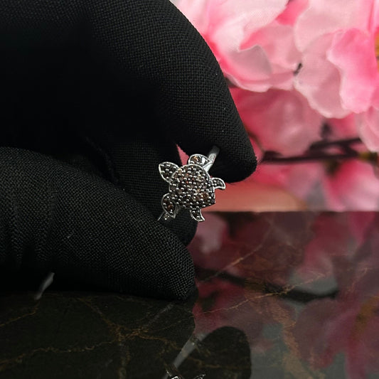 VIVIA Natural Smoky Brown Diamond Sea Turtle Wedding Ring- Promise Ring in 925 Sterling Silver