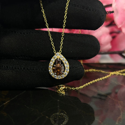 VIVA Teardrop Natural Champagne Diamond Halo Pendant Necklace in 14K Yellow Gold Vermeil