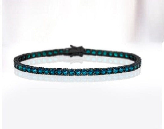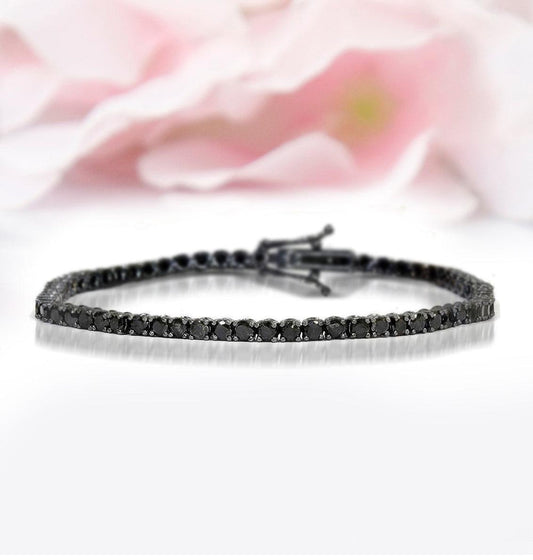3mm Black Diamond Tennis Bracelet in 925 Sterling Silver - Unisex Bracelet for Him/Her