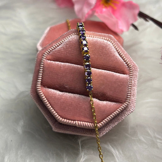 Round Cut Purple Amethyst Tennis Bracelet for women- Adjustable Tennise Bracelet Chain