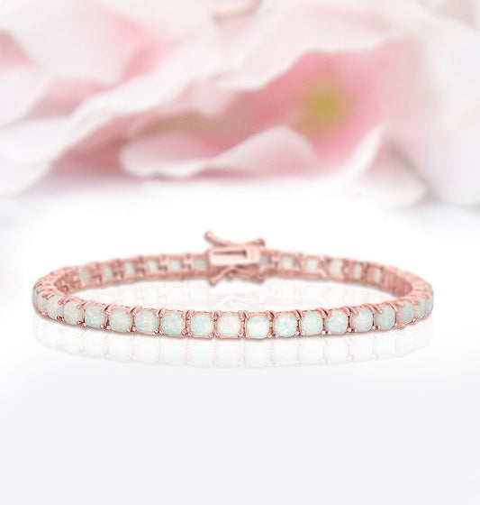 Fire Opal Tennis Bracelet- October Birthstone Bracelet for Women and Men in 14K Rose Gold Vermeil