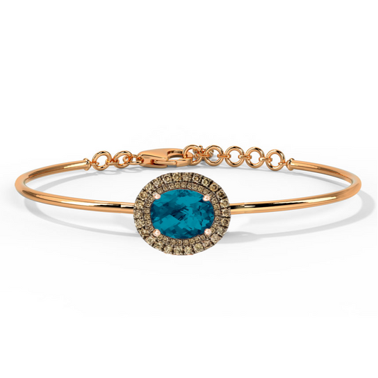Oval Cut London Blue Topaz and Natural Brown Diamond Bangle Bracelet With Adjustable Chain Extender
