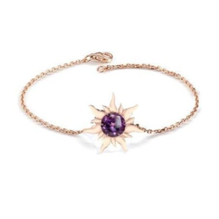 Round Cut Purple Amethyst Bracelet- 14K Rose Gold Finish- Rapunzel Sun Bracelet- Princess Jewelry