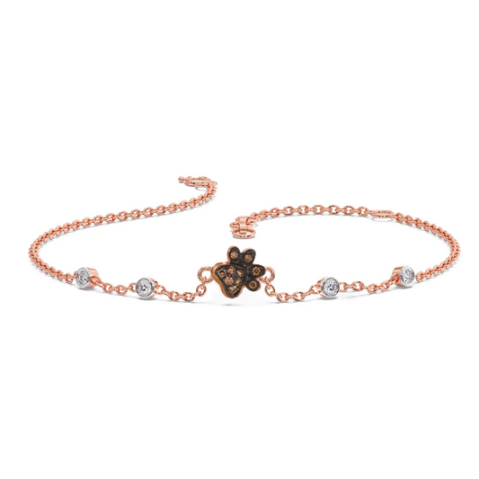 Natural Brown Diamond Paw Print Chain Bracelet Charm Bracelet- Pet Lover Bracelets With Adjustable Extander