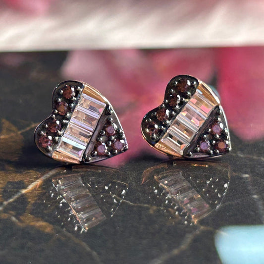 Heart Shaped Champagne Diamond and White baguette Stud Earring for Women