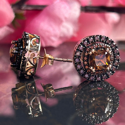 2.20Ct Cushion Cut Natural Champagne Brown Diamond Studs- Halo Brown Diamond earrings