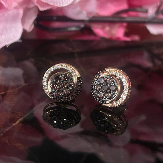EMBER Champagne Diamond Stud Earring Black Diamond Halo Stud Dainty Earring In Solid 925 Sterling Silver