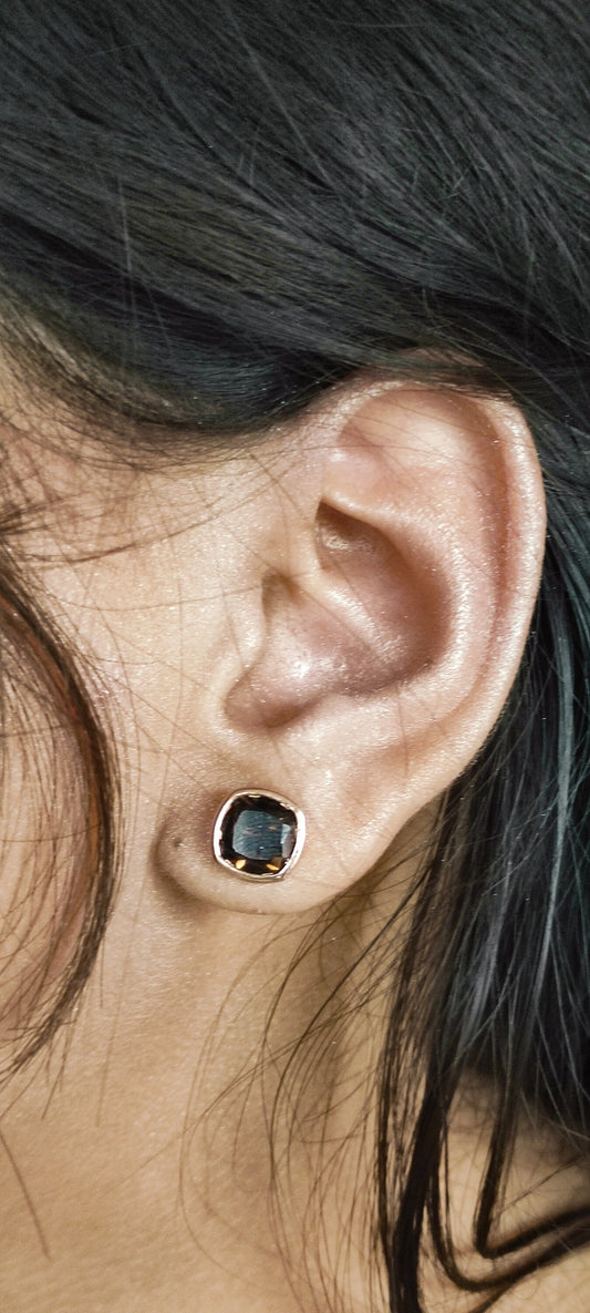 EARTHY 2Ct Bezel Cushion Cut Brown Diamond Studs- Solitaire Earrings For Women in Solid Silver
