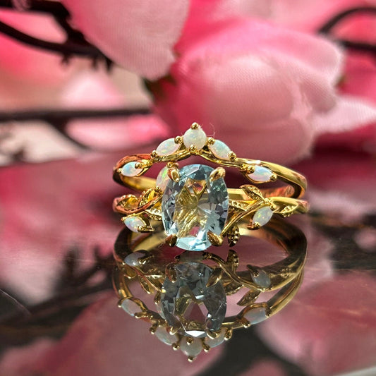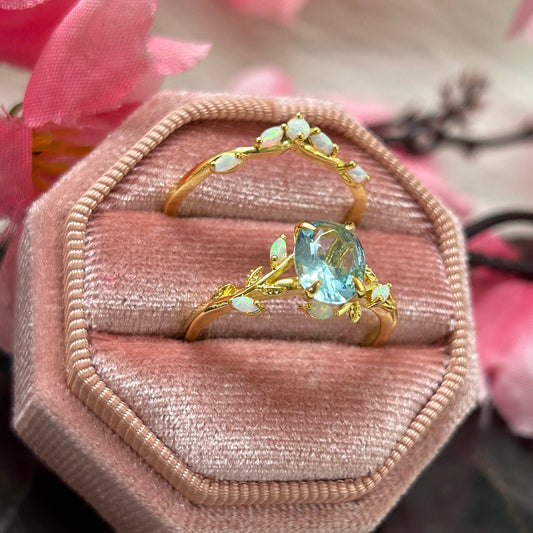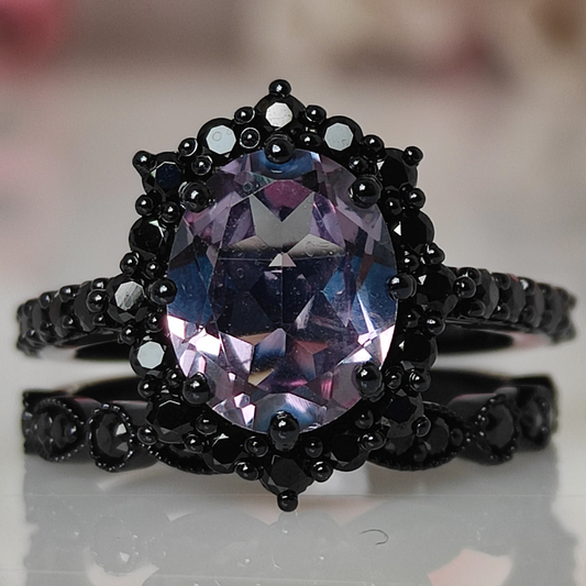 AURORA Oval Cut Natural Alexandrite and Fire Opal Wedding Ring- Duo His/Her Birthstone Engagement Ring