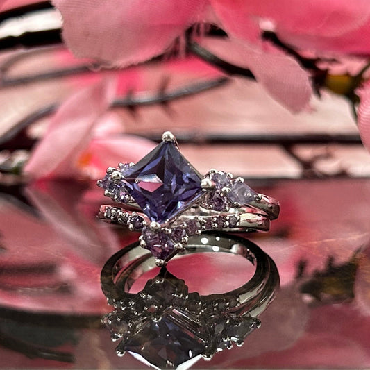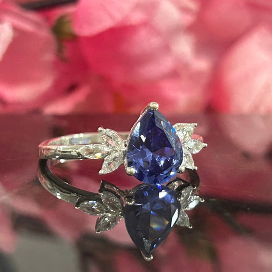 Pear Cut Tanzanite and Moissanite Wedding Ring in 925 Sterling Silver Promise Ring