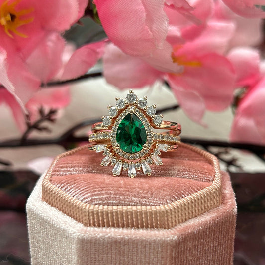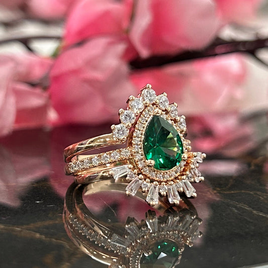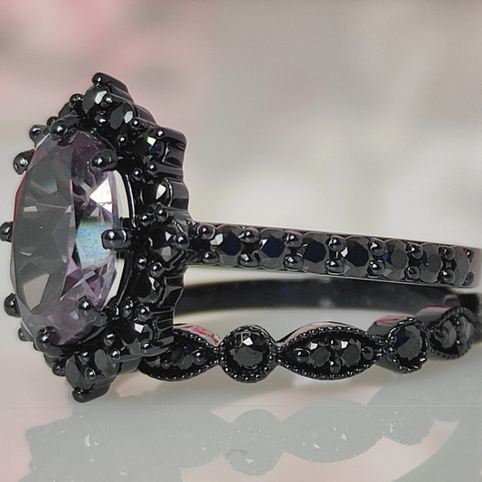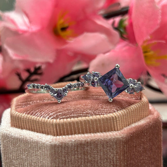 Snowflake Alexandrite Ring Set in 14K Rose Gold Vermeil- Vintage Alexandrite Engagement Ring Set