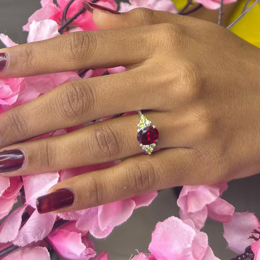 MORGEN Ruby and Peridot Engagement Ring- Minimalist Wedding Ring For Women