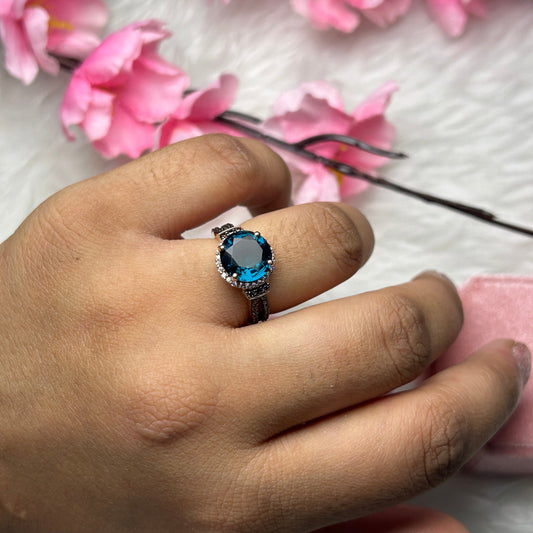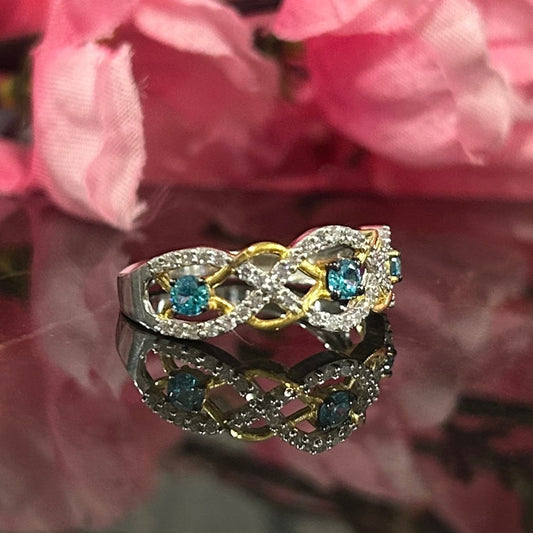 SCARLET 1.50Ct Blue Topaz and White Diamond Dainty Wedding Ring Solid Silver 14K Two Tone Gold Vermeil
