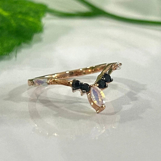 LUXE 10KT Rose Gold, Black Onyx and Moonstone Ring- Stackable Wedding Band