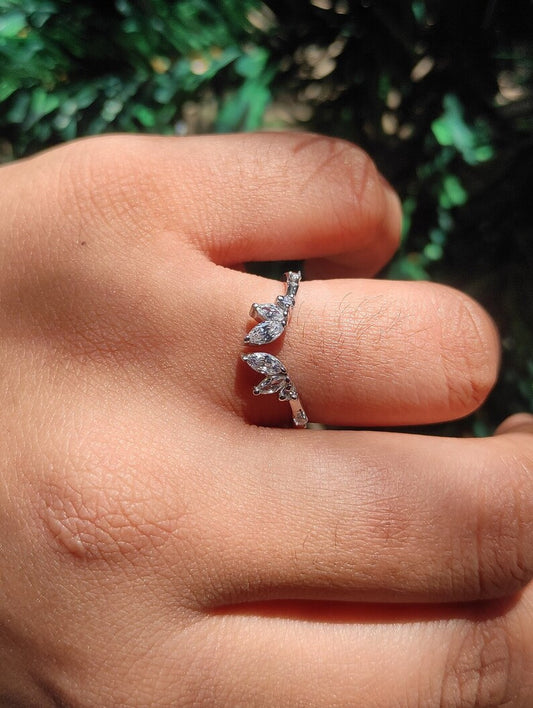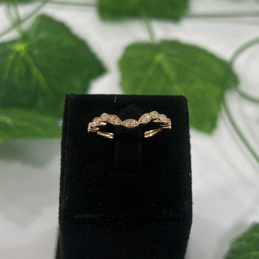 14K Gold Open Wedding Band- Solid Gold Gap Wedding Ring- Womens Cuff Stacking Ring- Moissanite Marquise Stackable Ring