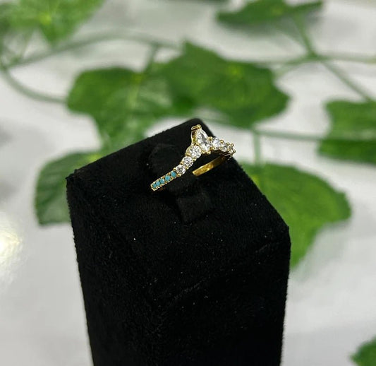 SKYE Round Cut Turquoie and White Dimaond Chevron Wedding Band in 10KT Yellow Gold