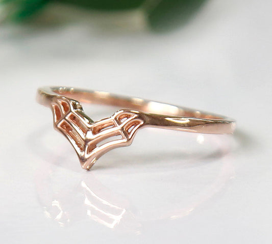 ROYAL GOLD V Shaped 10KT White Gold and Diamond Stackable Wedding Band