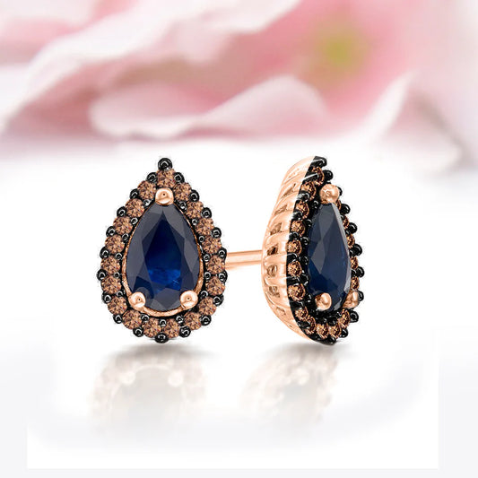 TEAL DREAM Teardrop Blue Sapphire and Brown Diamonds Minimalsit Stud Earrings For Women
