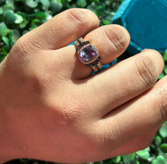 TWILIGHTHUE Natural Alexandrite and Brown Diamond Engagement Ring in 14k Rose Gold Vermeil