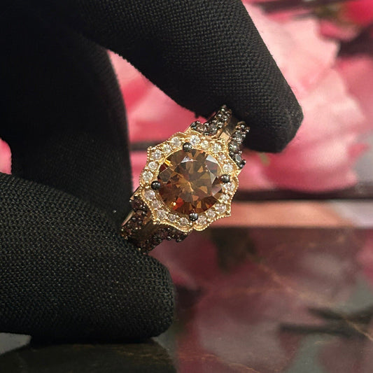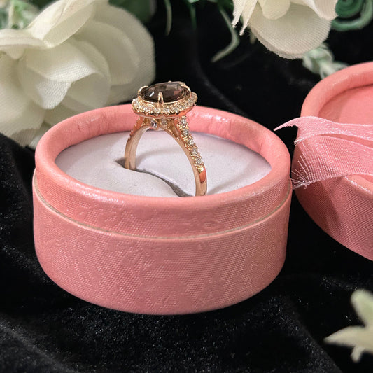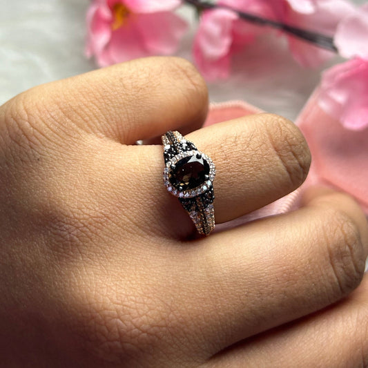 Natural Smokey Brown Diamond Ring- 925 Sterling Silver Halo Diamond Engagement Wedding Ring