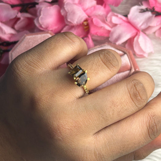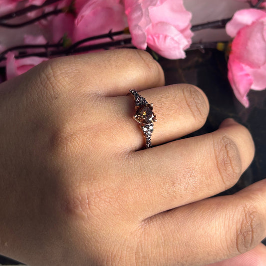 EARTHY Heart Cut Natural Champagne Diamond Ring 14K Rose Gold Vermeil Brown Diamond Band Ring