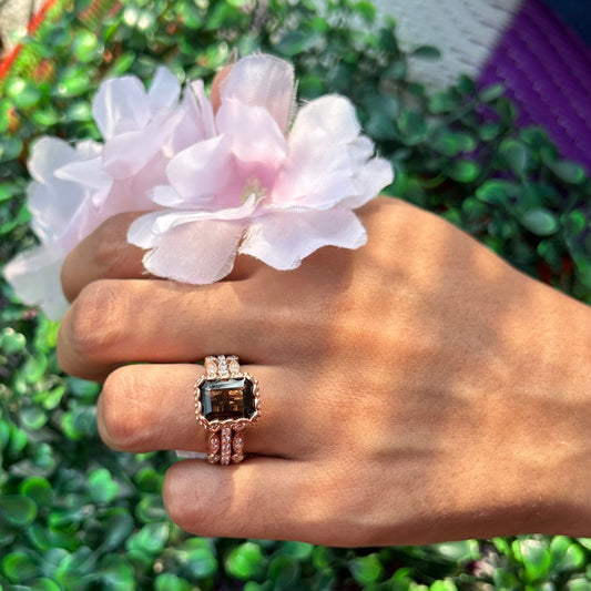 Bridal Radiant Cut Natural Smokey Brown Diamond Ring- Antique Diamond Wedding Band