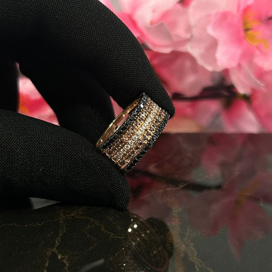 SCARLET Natural Brown Diamond, Black and White Diamond Stacked Engagement Ring in 925 Sterling Silver
