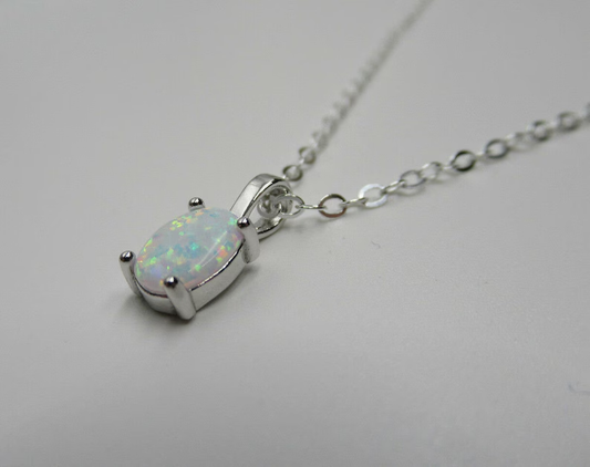 Oval Cut Fire Opal Pendant Necklace- Solitaire Pendant With 18" Chain- Birthstone Pendant Gift Fo Women