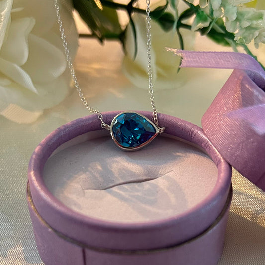 SKYE Teardrop London Blue Topaz Pendant Necklace With 18" Chain in 14K White Gold Vermeil