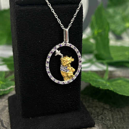 Customizable Diamonds- Winnie the Pooh and Honey Bee Pendant With 18" Chain Necklace For Cartoon Lover