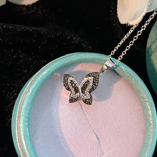 EARTHY Natural Brown Diamond Butterfly Pendant Necklace- Brown Gemstone Pendant- Gift for Her