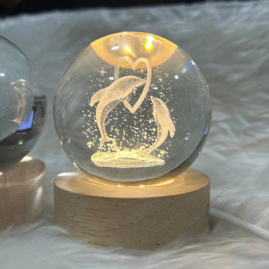 Custom Couple Dolphin Night Light Love Snow Globe Lamp