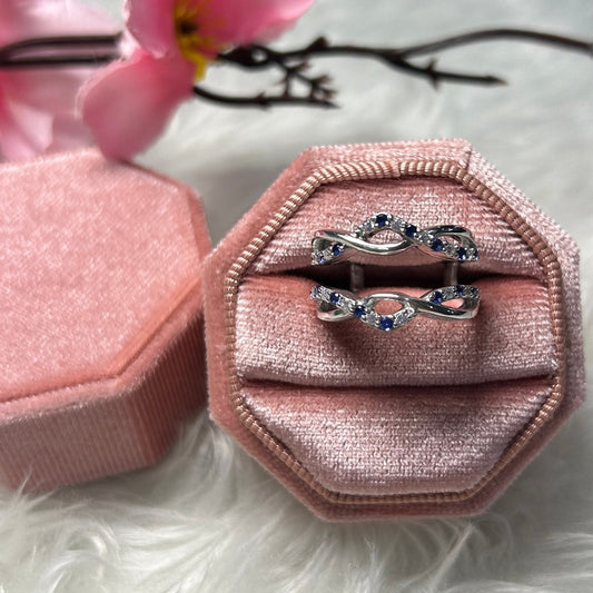 Infinity Double Curved Band 0.90Ct Blue and White Sapphire Ring Guard in 925 Sterling Silver