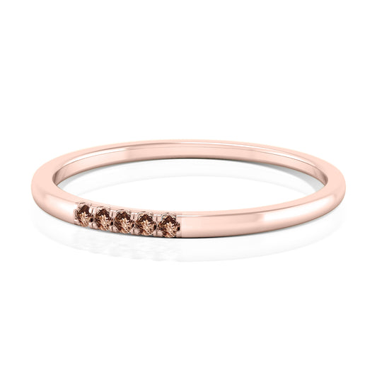 EARTHY Smokey Brown Diamond Band- Five Stone Wedding Band Ring- Delicate Promise Ring