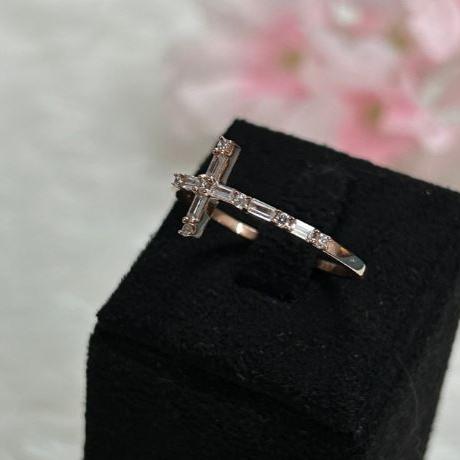 Baguette & Round Cut Diamond Ring- Cross Ring- 925 Sterling Silver- Cross Religious Minimalist Ring