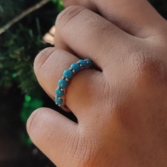 Round Cut Turquoise Half Eternity Band- Curved Ring- 925 Sterling Silver- Turquoise Wedding Ring