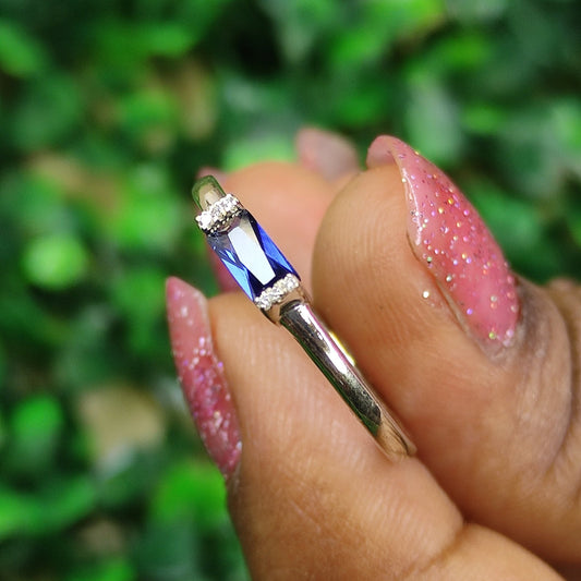 ROYAL Blue Sapphire Ring- Baguette Ring- Minimalist Ring- Dainty Jewelry For Women in 925 Sterling Silver