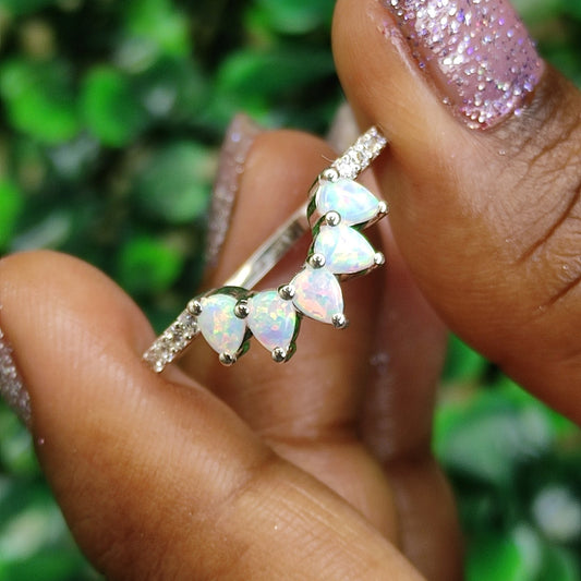 Pear & Round Cut Opal Diamond Engagament Ring- Opal Stacking Ring- 925 Sterling Silver