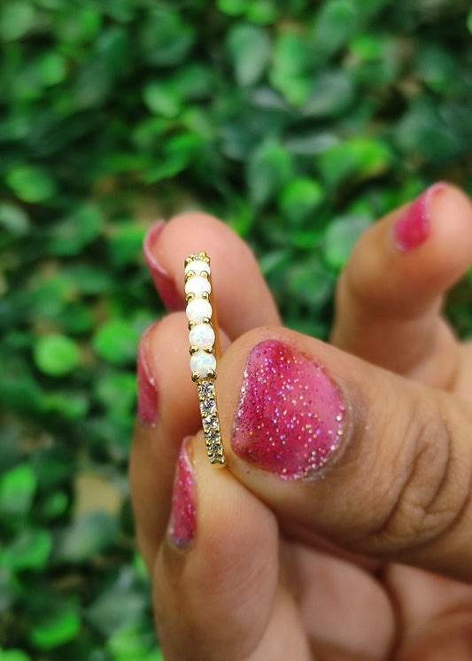 Round Cut Opal & Diamond Wedding Band Ring- Promise Ring- 14K Yellow Gold Vermeil