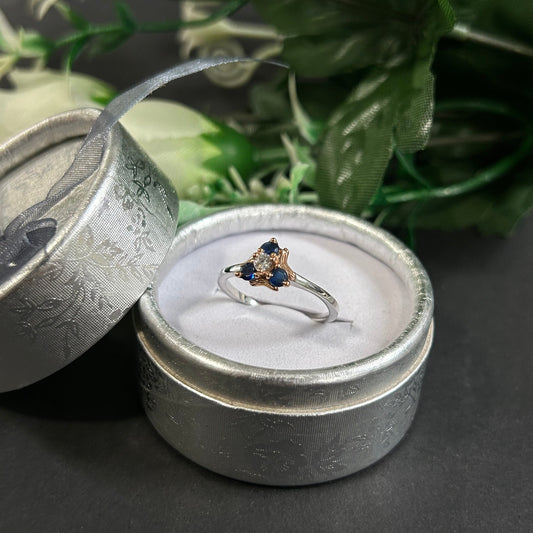 Blue and White Sapphire Zelda Triforce Ring- Video game Lover Ring