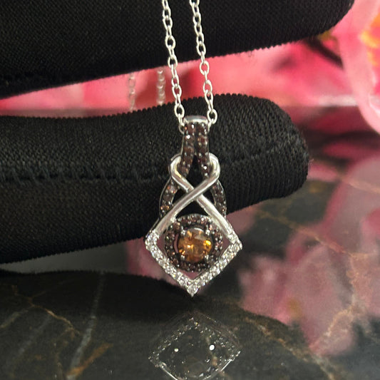 Champagnerfarbene Halskette mit Diamant-Anhänger