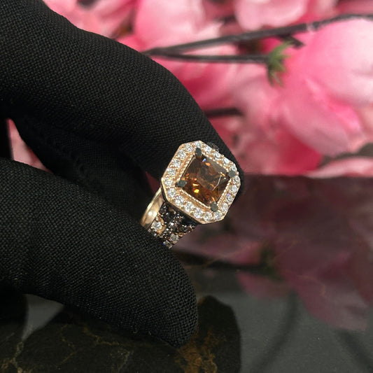 Verlobungsring mit natürlichem braunem Halo-Diamant