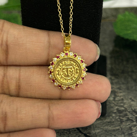 Halskette mit Blumenanhänger im Kreisrahmen und rundem Rubinschliff