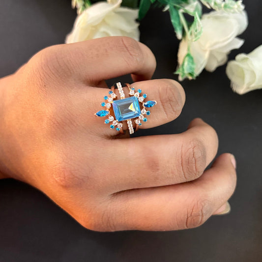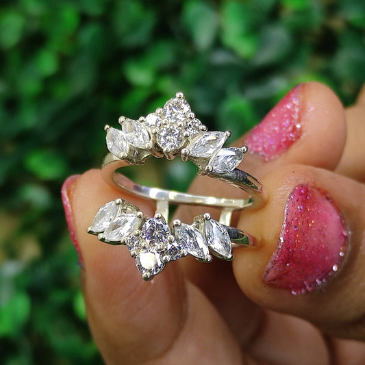 0.80Ct Round and Marquie Cut Topaz Ring Enhancer- Wedding Ring Guard in 925 Sterling Silver
