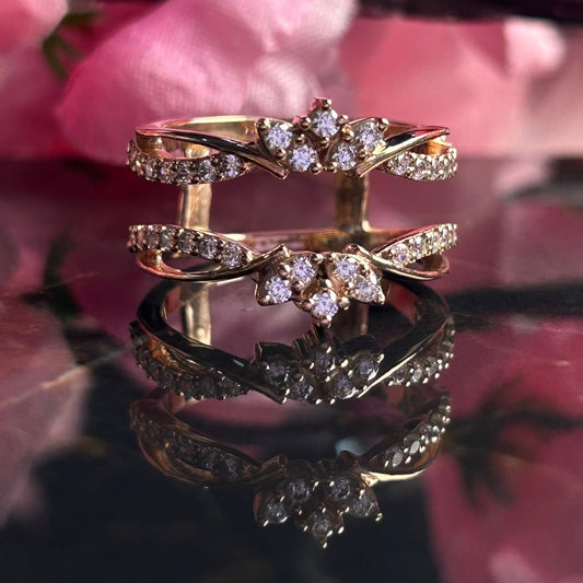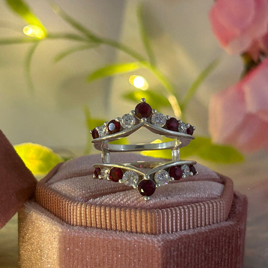 Roter Granatring - Weißer Diamantring-Enhancer-Schutz - Eheringjacke - Verlobungsring-Wrap