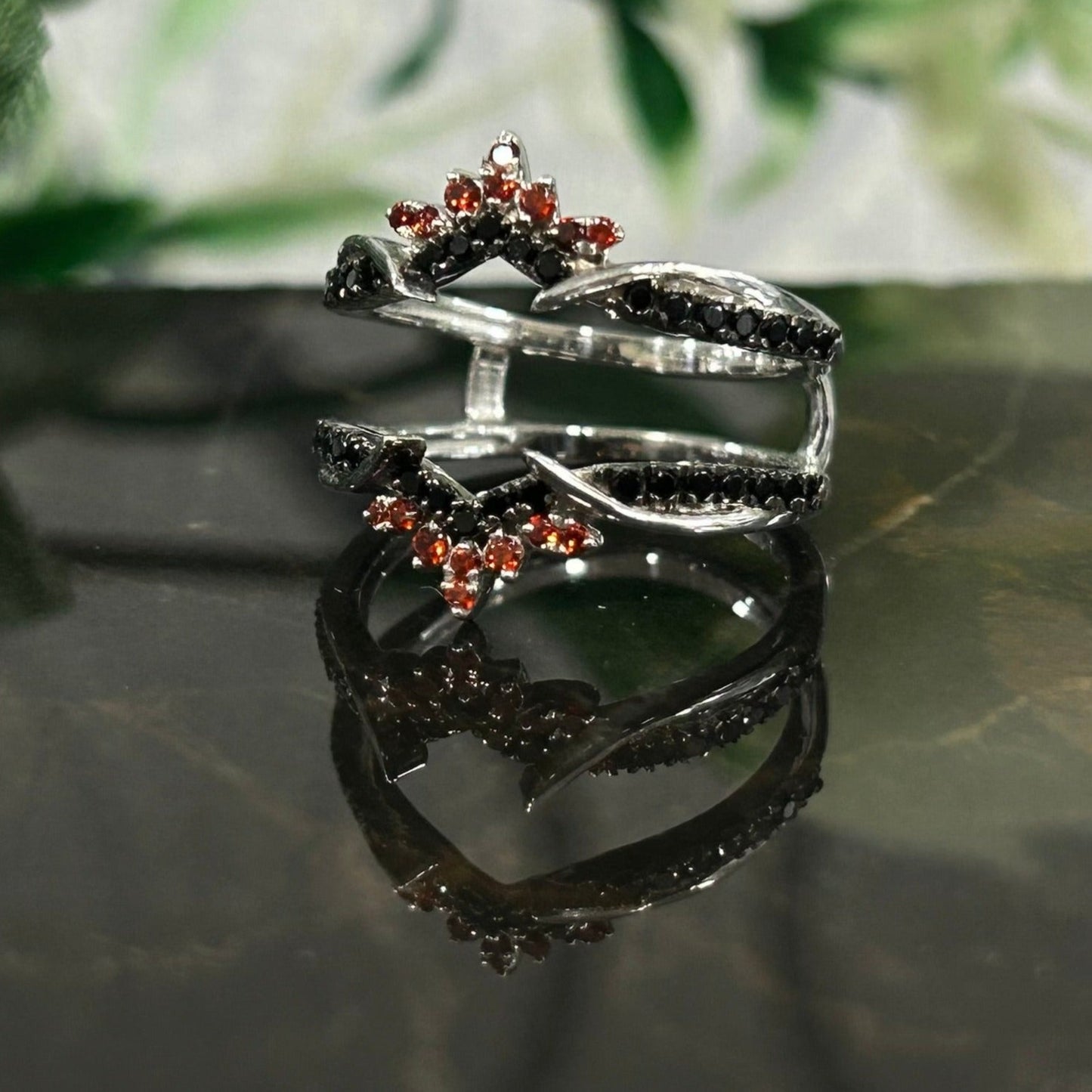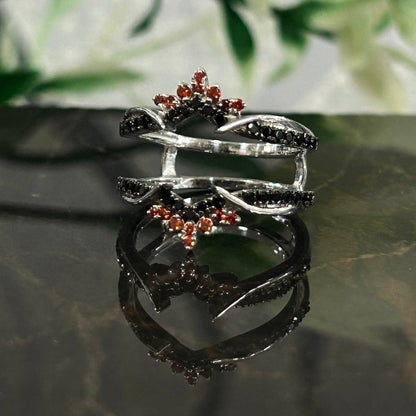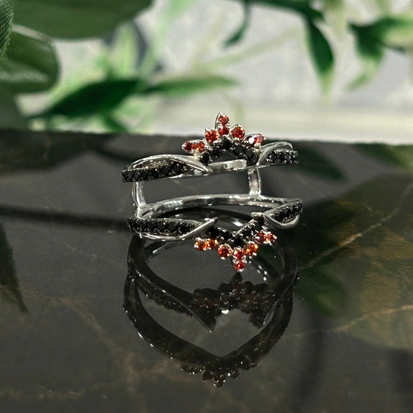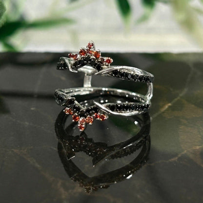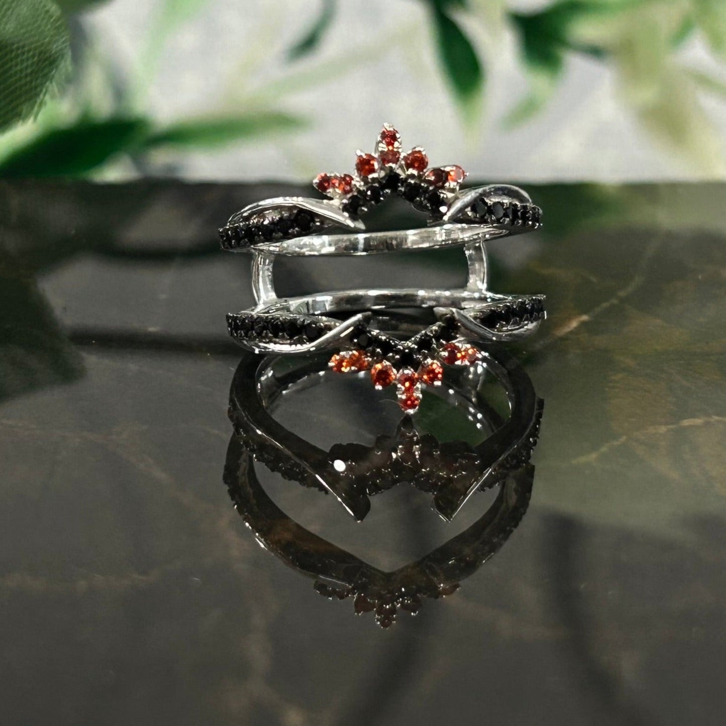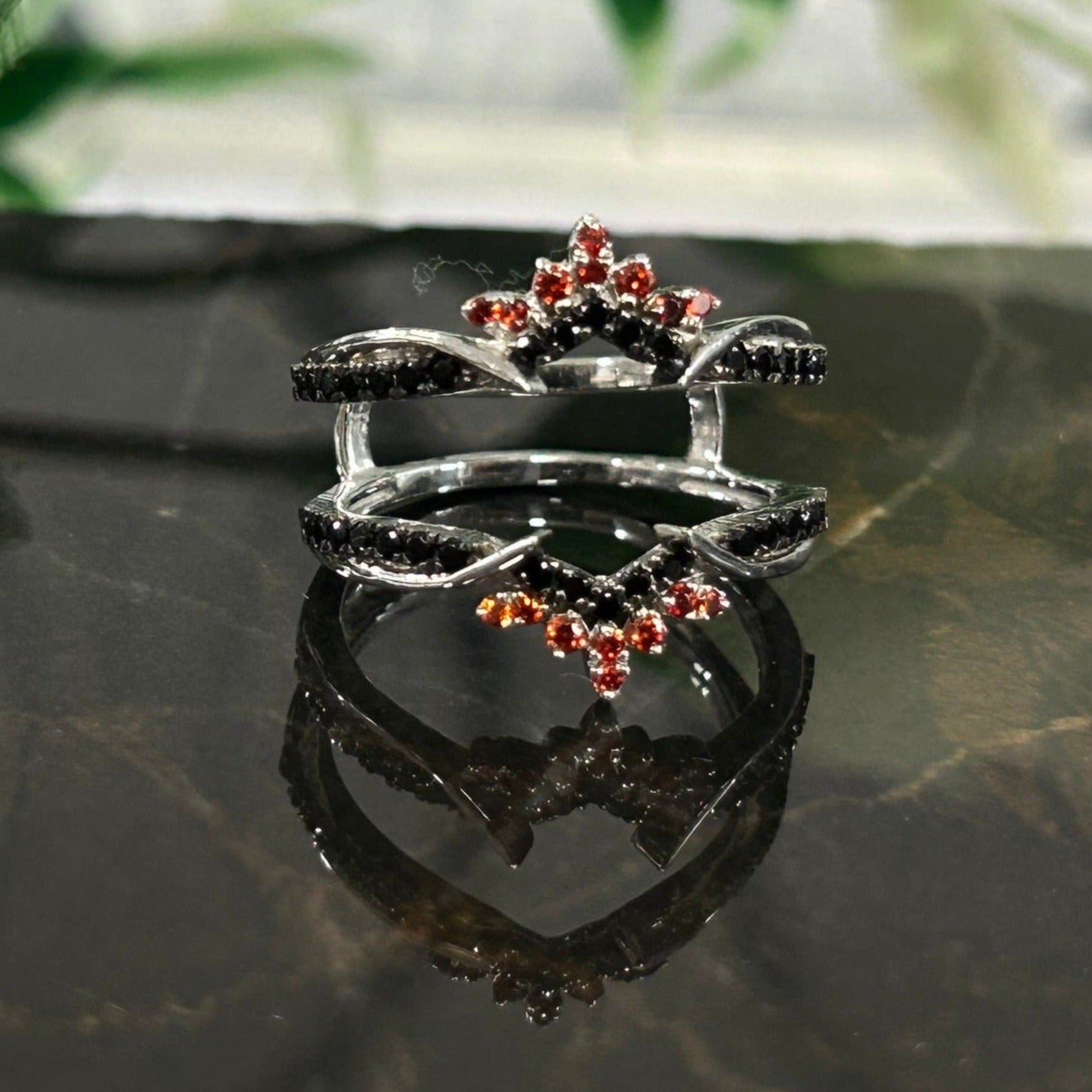 Vintage Ring Enhancer- Granat Ring- Schwarzer Diamant Ring Jacke- Ehering Enhance Wrap- Verlobungsring Schutz- Braut passende Ring Geschenke