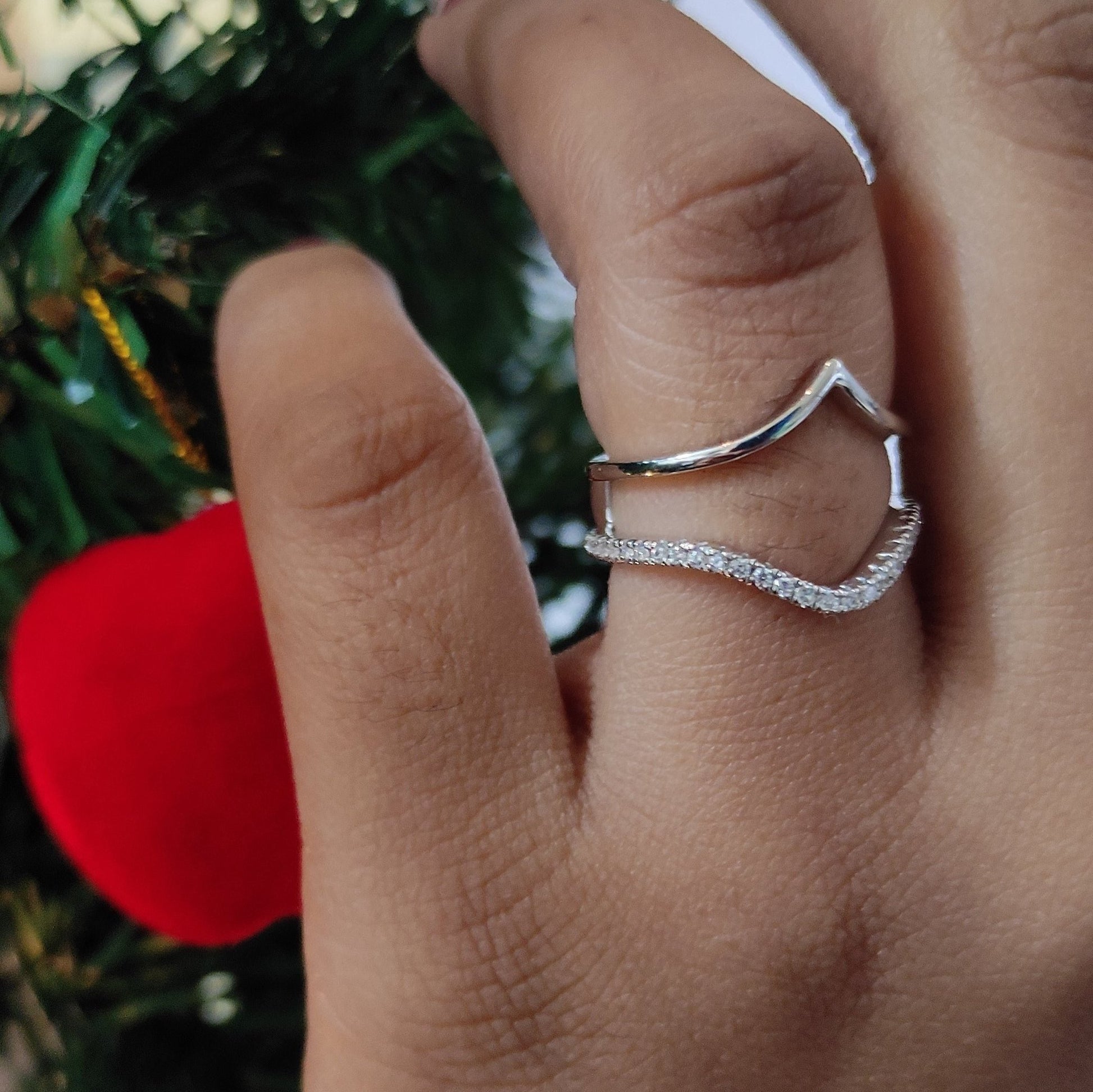 Champagner Diamantring Enhance Wrap 14K Roségold Vermeil Geschwungener Verlobungsringschutz - Eheringjacke - Stapelbarer Braut-Verlobungsring