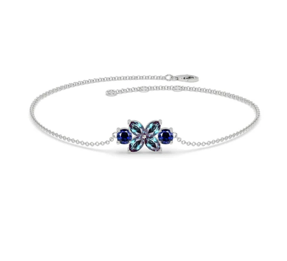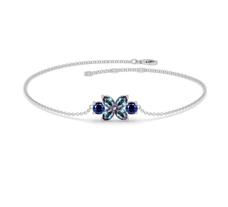 Natürliches Alexandrit- und Saphir-Armband - Zierliches Diamantarmband für Frauen Gold Vermeil Juni Geburtsstein - Jahrestag Geburtstagsgeschenk für Sie