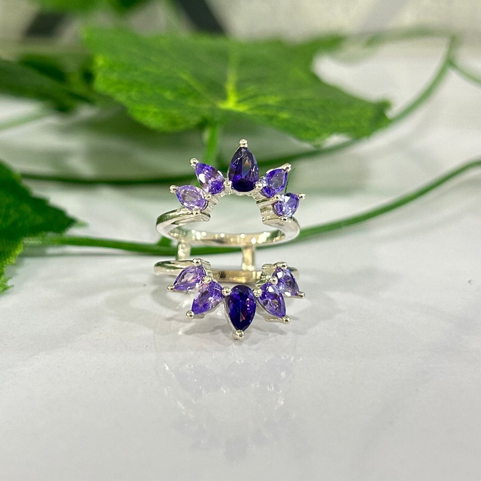 Verlobungs- und Ehering mit natürlichem blauem Moissanit