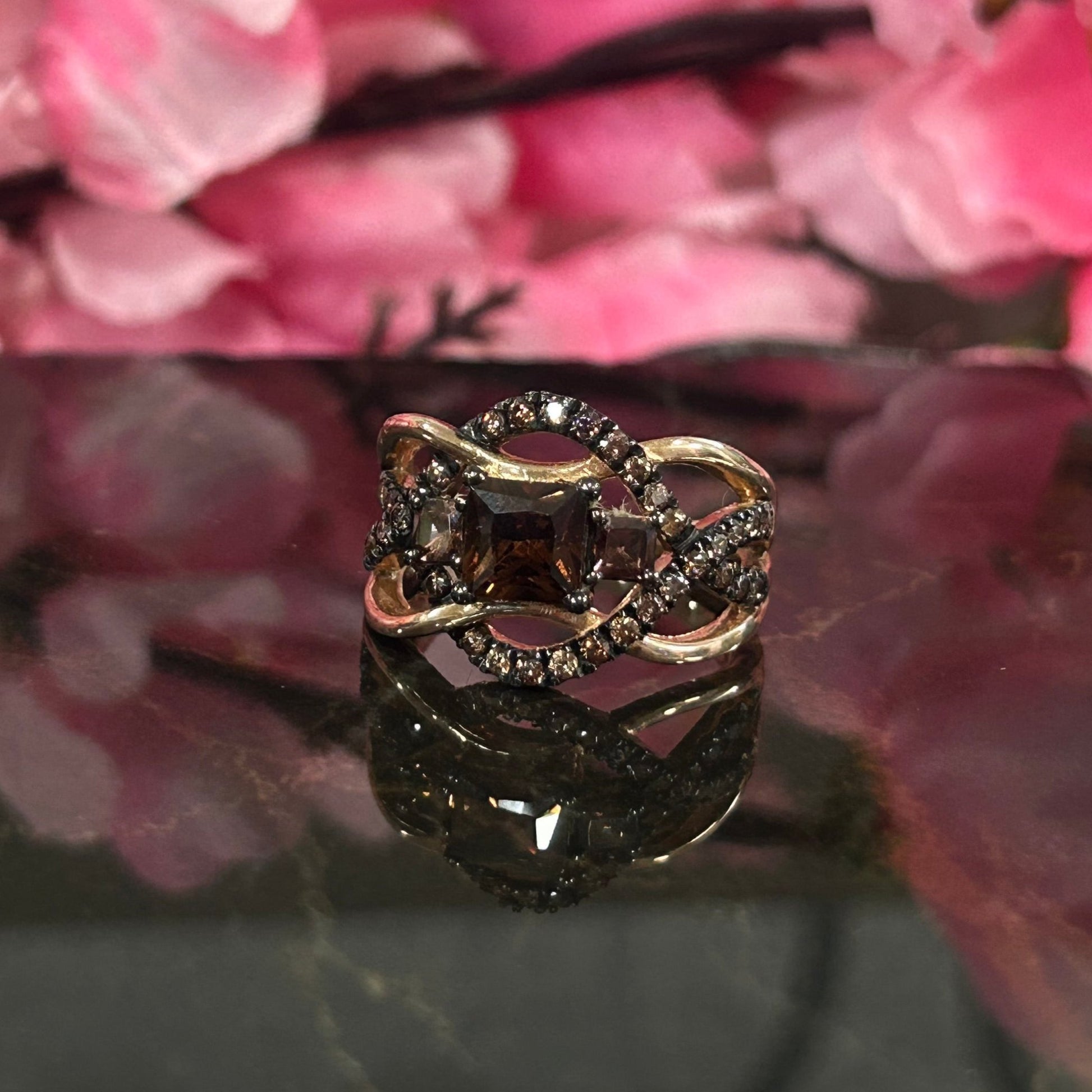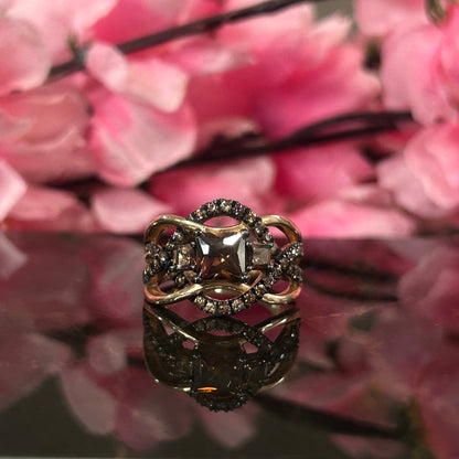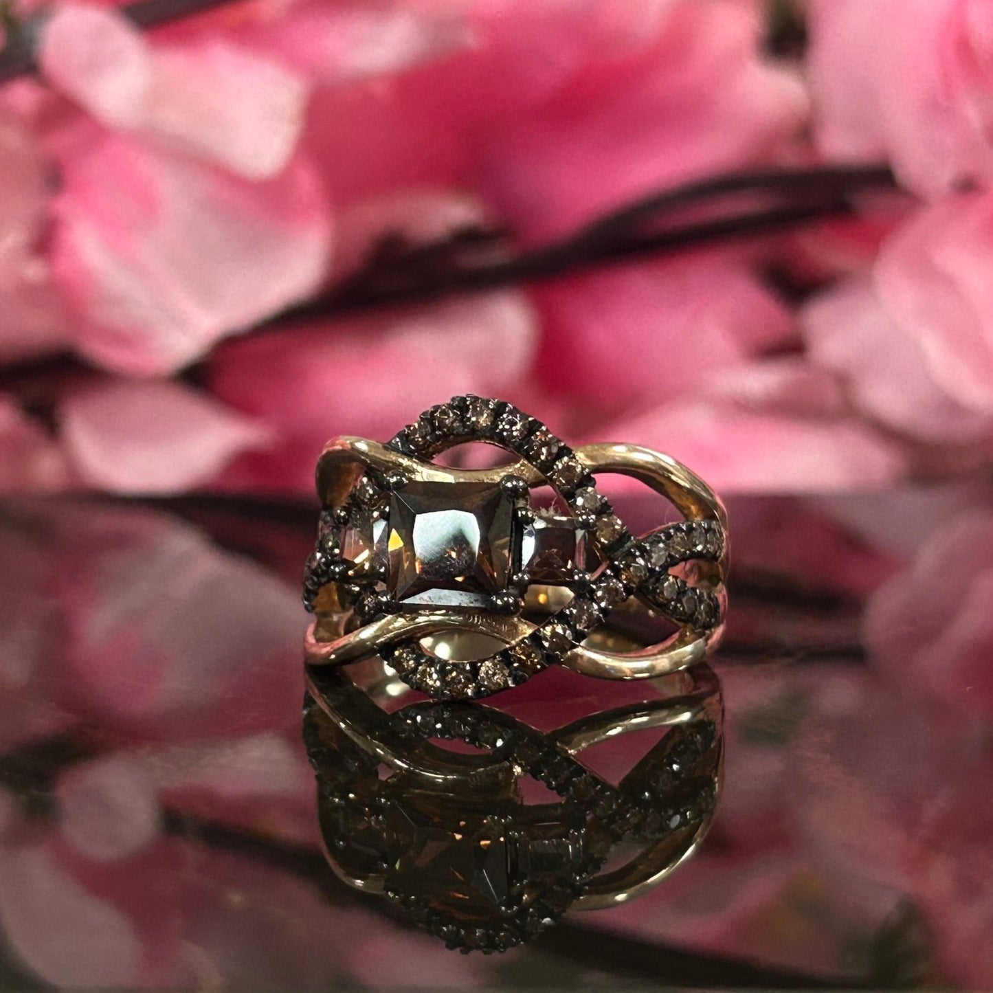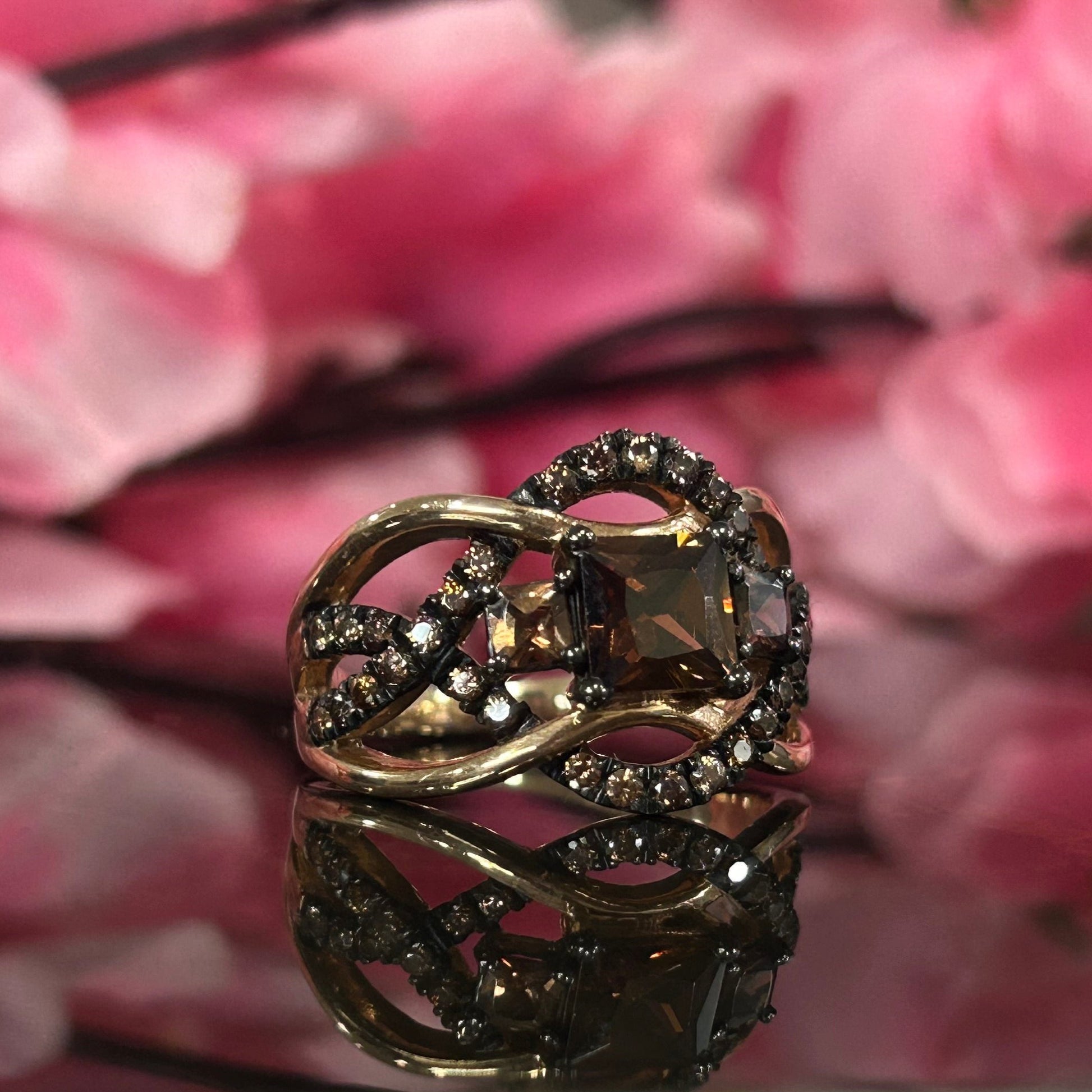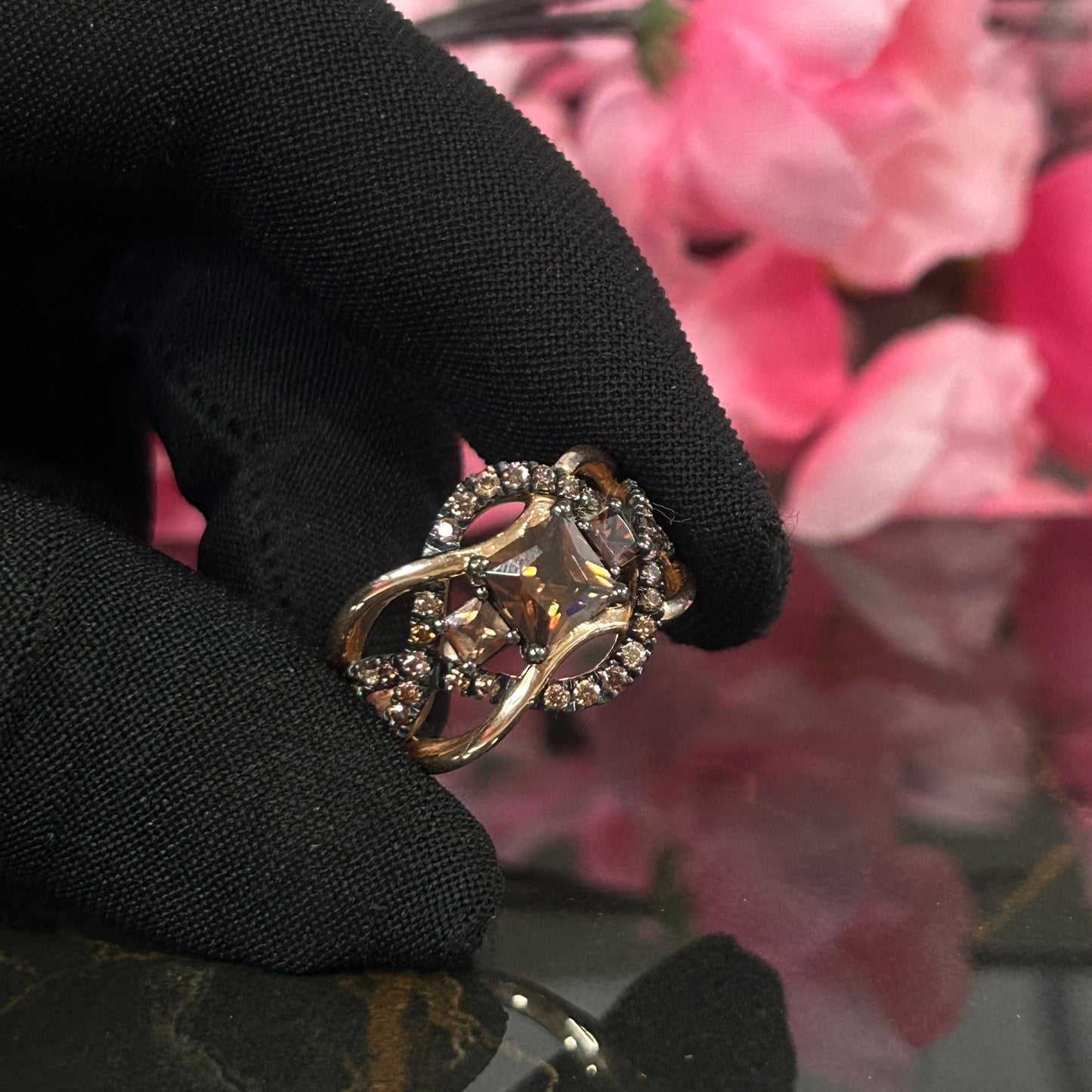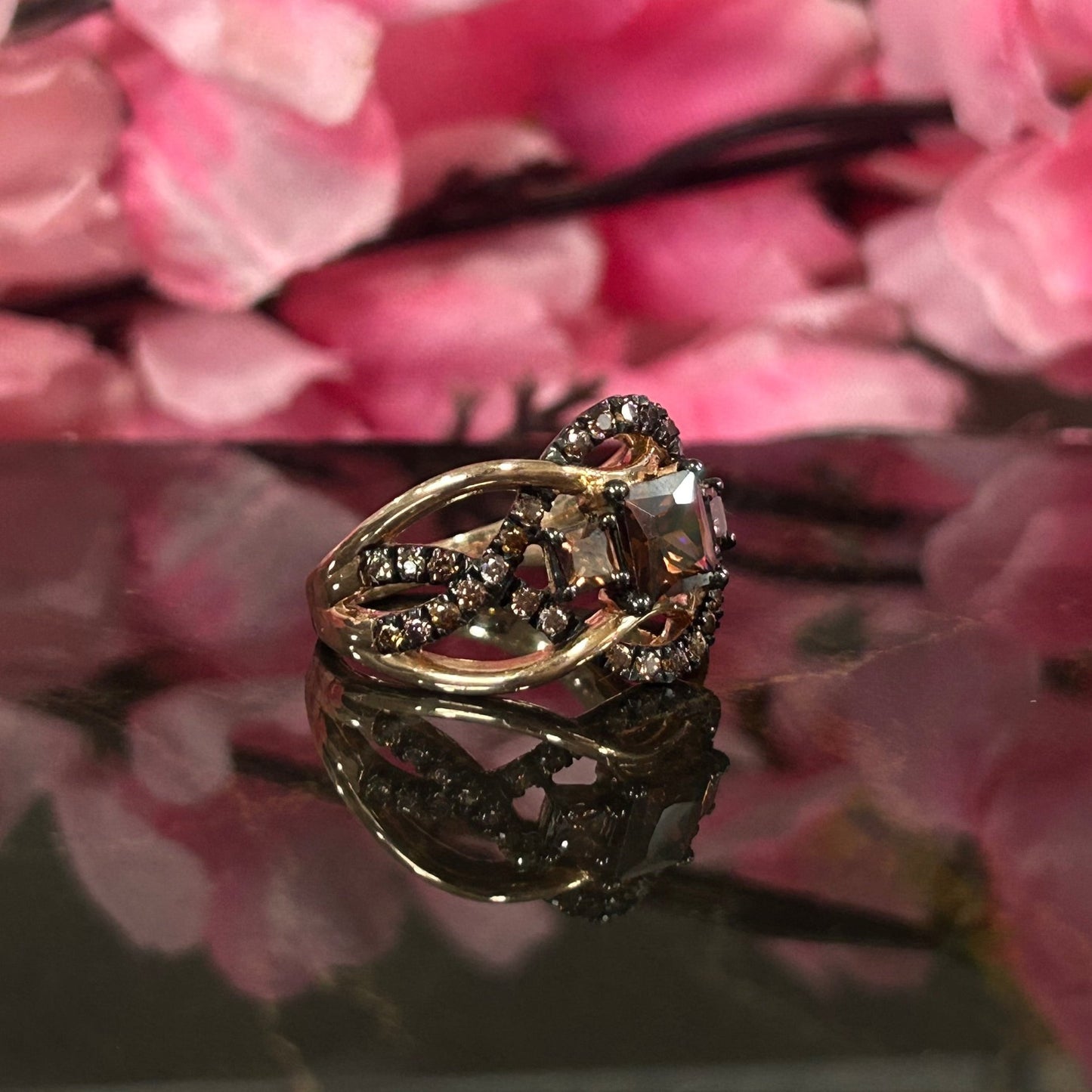 Rundschliff Champagner Diamant Ring Ehering Halo Ehering 14K Roségold Finish Moderner Verlobungsring Brauner Diamant Versprechensring Geschenke Geschenk für Frauen
